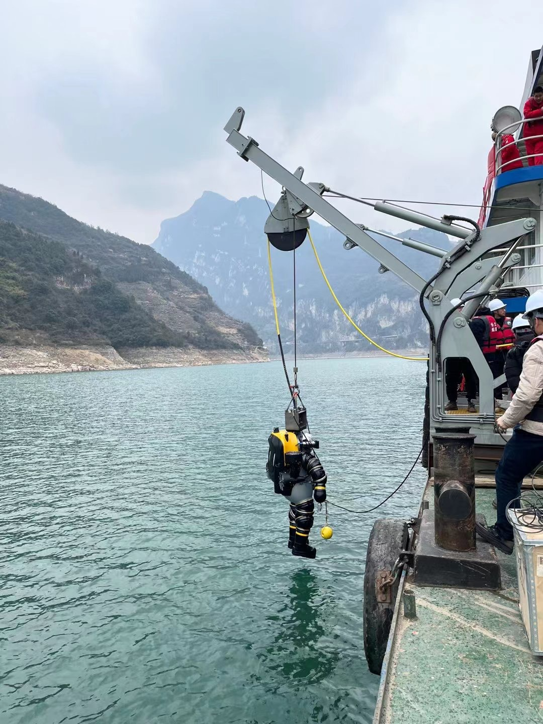 2023年2月21日,海兰信联合武汉长江航道救助打捞局,上海交大海洋水下工程科学研究院有限公司,在三峡库区廖叶湾水域开展ADS载人常压潜水系统(以下简称“ADS”)应急抢险测试。