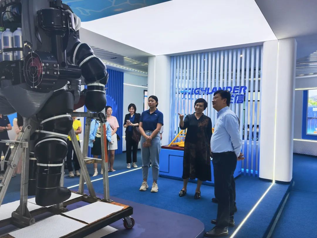 中上协副会长孙念瑞、中天火箭总经理李健,华能国际董事会秘书黄朝全、湘邮科技董事会秘书孟京京等20余家上市公司高管参观海兰信海洋科技展厅
