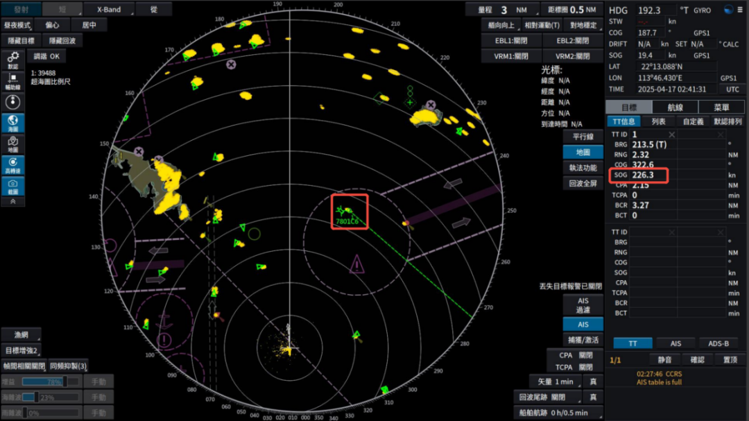 本次成果基于海兰信X/S波段固态雷达平台,融合多普勒处理与AI算法,向香港水警展示了海兰信雷达的硬核技术。