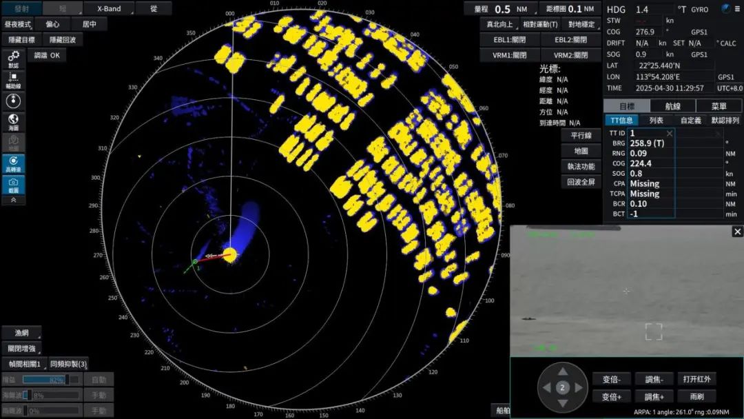 突破小型漂浮物探测极限,成功捕获1.5米木质浮杆的微弱回波信号,填补老式雷达能力空白。此技术为海上搜救、反走私等场景提供关键支持。