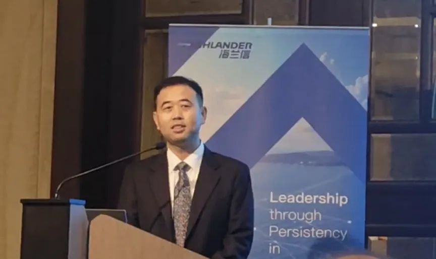董中新先生代表公司致欢迎辞。他介绍了海兰信近年来的全球化发展历程与核心业务布局,并特别向中国驻阿联酋大使馆及中国船级社(CCS)迪拜分社给予的支持表示衷心感谢。董中新先生强调,海兰信将持续秉持开放合作、尊重本土的原则,深度融入当地市场生态,以卓越的产品性能、领先的技术实力、至诚的服务态度和坚定的合作承诺,携手客户与伙伴,共同树立中国高端制造在海事领域的优质形象。