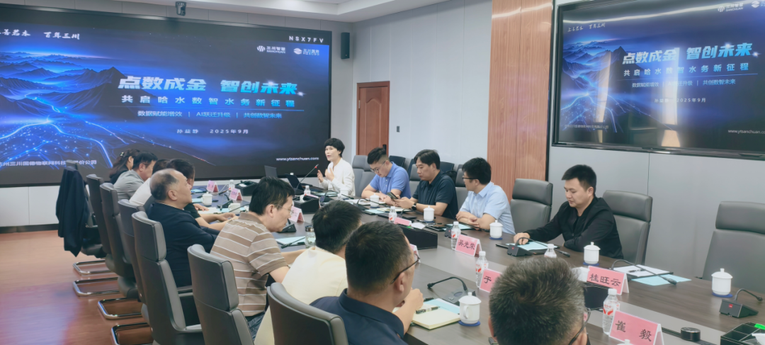 9月9日上午,三川智慧科技股份有限公司总经理宋财华、三川国德总经理孙益静等一行6人,走进哈尔滨水务发展建设集团,双方以“点数成金,智创未来,共启哈尔滨数智水务新征程”为主题,共话数智水务新发展。哈尔滨水务发展建设集团孙明董事长、方军总经理等众多领导及部门负责人热情参与,共同开启这场智慧碰撞之旅。 会议伊始,三川智慧总经理宋财华对本次会议的背景、目的和重要意义进行了简要阐述,为后续深入交流奠定基调。随后,三川国德总经理孙益静以精彩的PPT演示,围绕会议主题展开汇报。在国家“数据要素X”及“人工智能+”战略不断推进的大背景下,智慧水务建设迎来全新阶段。孙益静总经理的汇报紧跟时代步伐,结合水务行业现状与三川智慧实用型智慧水务核心主张,从数据赋能增效、AI跃迁升级及共创数智未来三个部分展开。 通过丰富的案例和实际场景,孙益静总经理详细阐释了水务行业实现数据价值的路径。从硬件筑基、平台落地到数据增值,不仅能实现数据对内赋能增效,还可推动数据对外资产变现;借助人工智能技术,重构水务业务场景,让数据价值高效转化,实现人力资本价值最大化,助力组织智能化转型。最后,提出数据+AI一体化联合解决方案,旨在与哈水共创数据产品与AI应用落地,稳步推进AI与业务深度融合。 在互动交流环节,哈水务集团参会领导和部门负责人结合工作实际,从技术细节、解决方案可行性、合作模式等多方面提出问题与建议。三川智慧参会人员凭借丰富经验,对每个问题都进行了详细解答与深入交流,双方在探讨中不断碰撞出合作新思路。此次交流,不仅是一次思想的交融,更是三川智慧与哈尔滨水务发展建设集团携手迈向数智水务新征程的起点。未来,双方将以此次会议为契机,进一步深化合作,在数智化浪潮中,共同推动哈尔滨水务高质量发展,为水务行业的智慧化转型贡献力量!