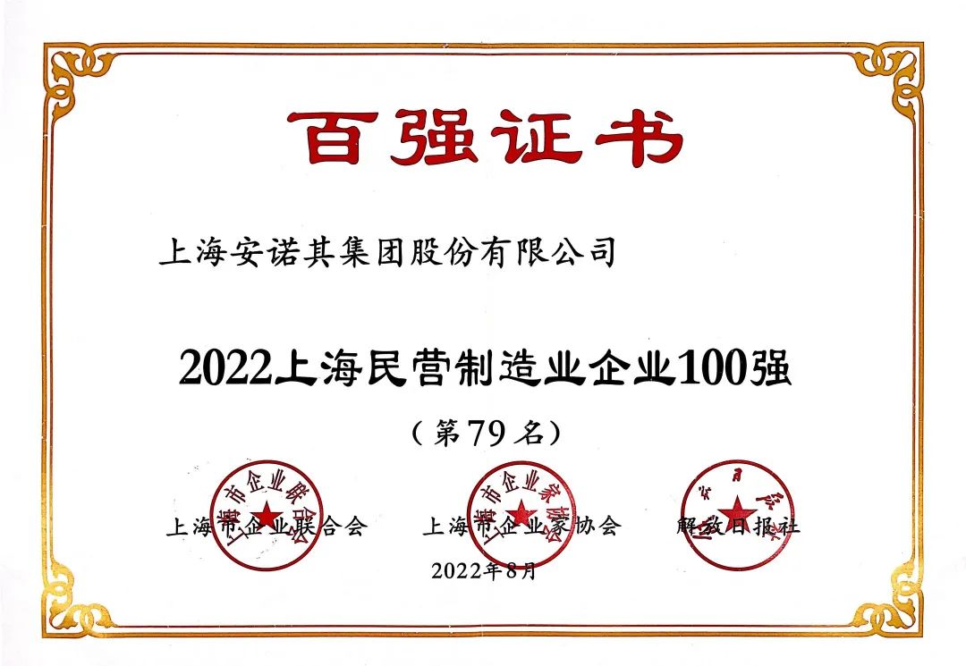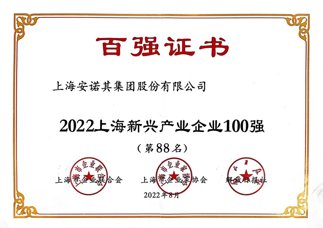 8月30日,2022上海百强企业名单发布,安诺其集团荣登“上海民营制造企业100强”榜单以及“上海新兴产业企业100强”榜单,再次收获双百强企业荣誉。