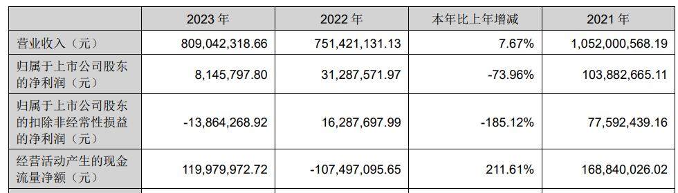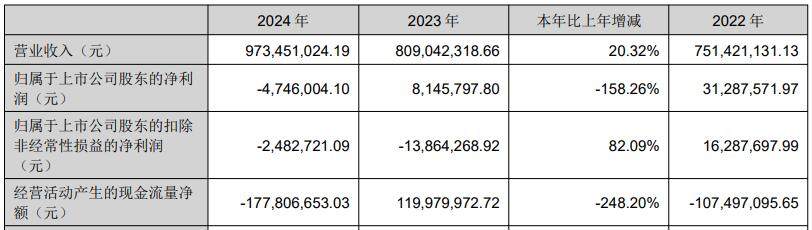 安诺其净利连降5年近2年扣非均亏损。2020年、2021年、2022年、2023年、2024年,安诺其归属于上市公司股东的净利润同比下降分别为27.98%、9.80%、69.88%、73.96%、158.26%。