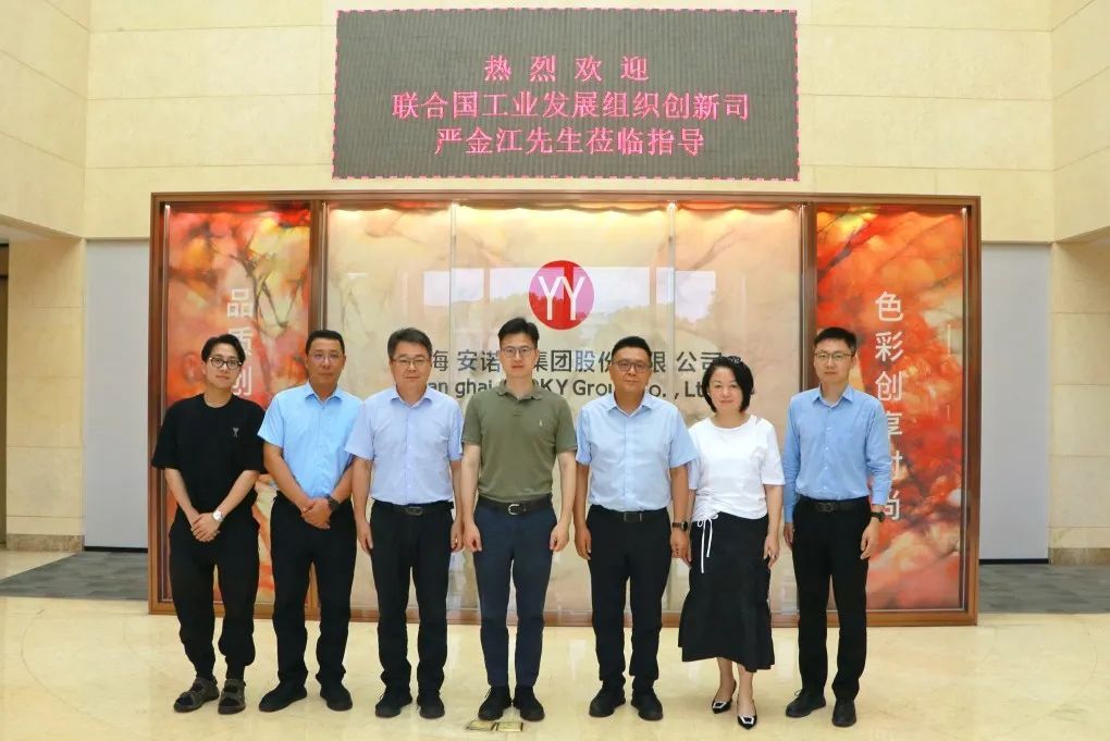 8月6日,联合国工业发展组织创新司严金江先生,东华大学教授博导、上海市服饰学会刘春红会长,国家染整工程技术研究中心主任、东华大学化学化工与生物工程学院毛志平副院长一行莅临安诺其集团参观指导。集团纪立军董事长、章纪巍副总裁,尚乎彩链刘怀君副总经理等接待来访。双方围绕“绿色印染技术”“AI+实体智造”等前沿议题展开深度探讨,共同擘画行业可持续发展的创新蓝图。