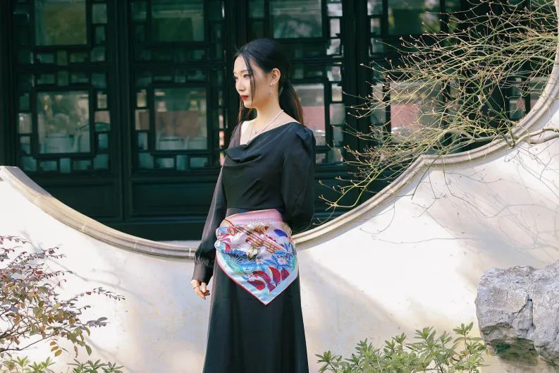 这款获奖丝巾以青浦水系与地标建筑为灵感,融合数字双面印花工艺,打造兼具艺术价值与实用性的文创精品。以蝴蝶轮廓勾勒青浦地图,融入市花白玉兰、四叶草(国家会展中心)、放生桥等地标元素。16姆米桑蚕丝斜纹绸,手工卷边缝制,品质卓越。采用环保印染技术,符合绿色设计理念。