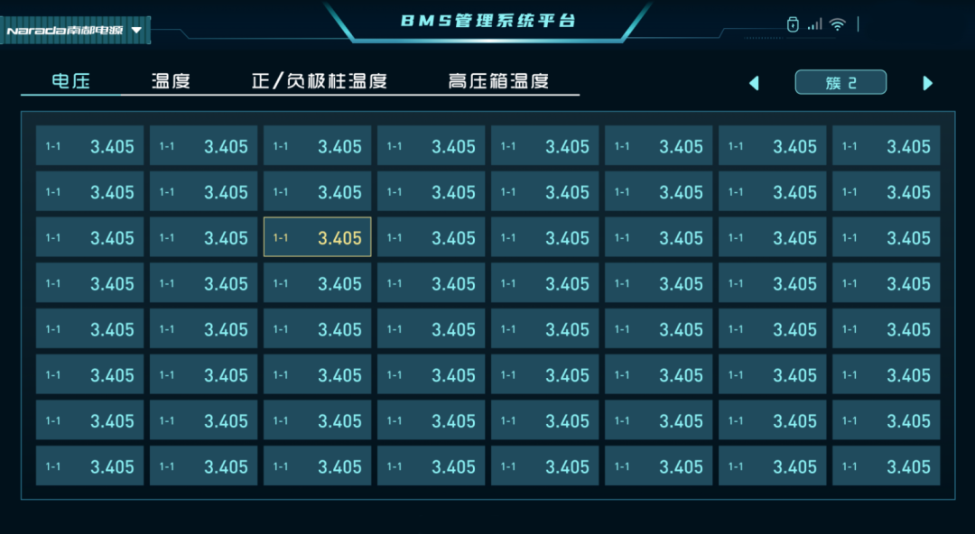 南都储能BMS系统内部的控制信号遥测周期可达到毫秒级别,测量信号达1秒以内,售后工程师无需到达现场,也可轻松获取运行数据并开展数据分析、故障定位等工作。