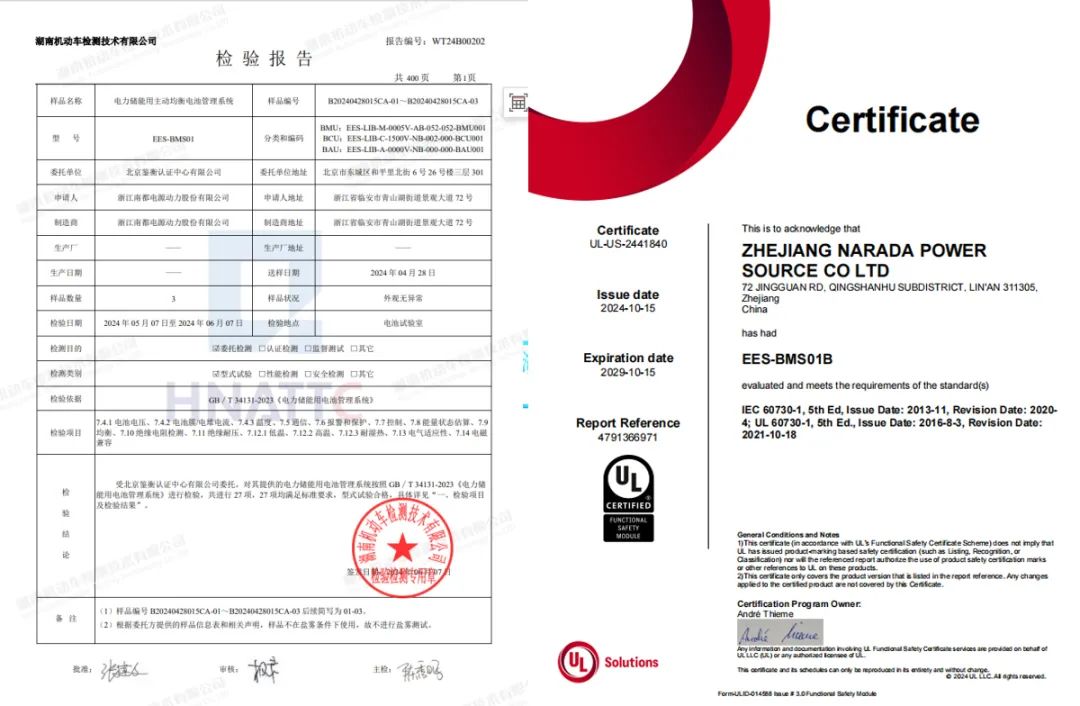 日前,南都电源成功研发的新一代储能1500V液冷主动均衡BMS系统,已获得GB34131-2023型式试验CGC认证报告、IEC/UL60730功能安全认证报告及证书,具备国内、欧美等区域销售资质。