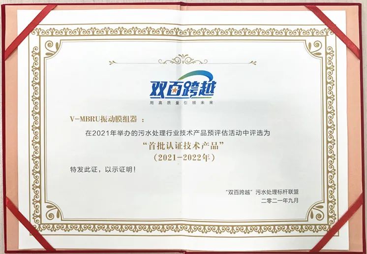 9月17日,在2021(第十三届)上海水业热点论坛的“技术产品的场景与未来——污水处理技术产品首次发布会”主题环节,“双百跨越”污水处理标杆联盟(简称“双百联盟”)重磅发布了“首批认证技术产品”。高科技环保企业碧水源自主创新研发的振动膜生物反应器(MBR)技术,凭借其绿色低碳等突出优势,从32家企业申报的52项技术产品中脱颖而出,荣获“双百跨越”污水处理行业“首批认证技术产品”。