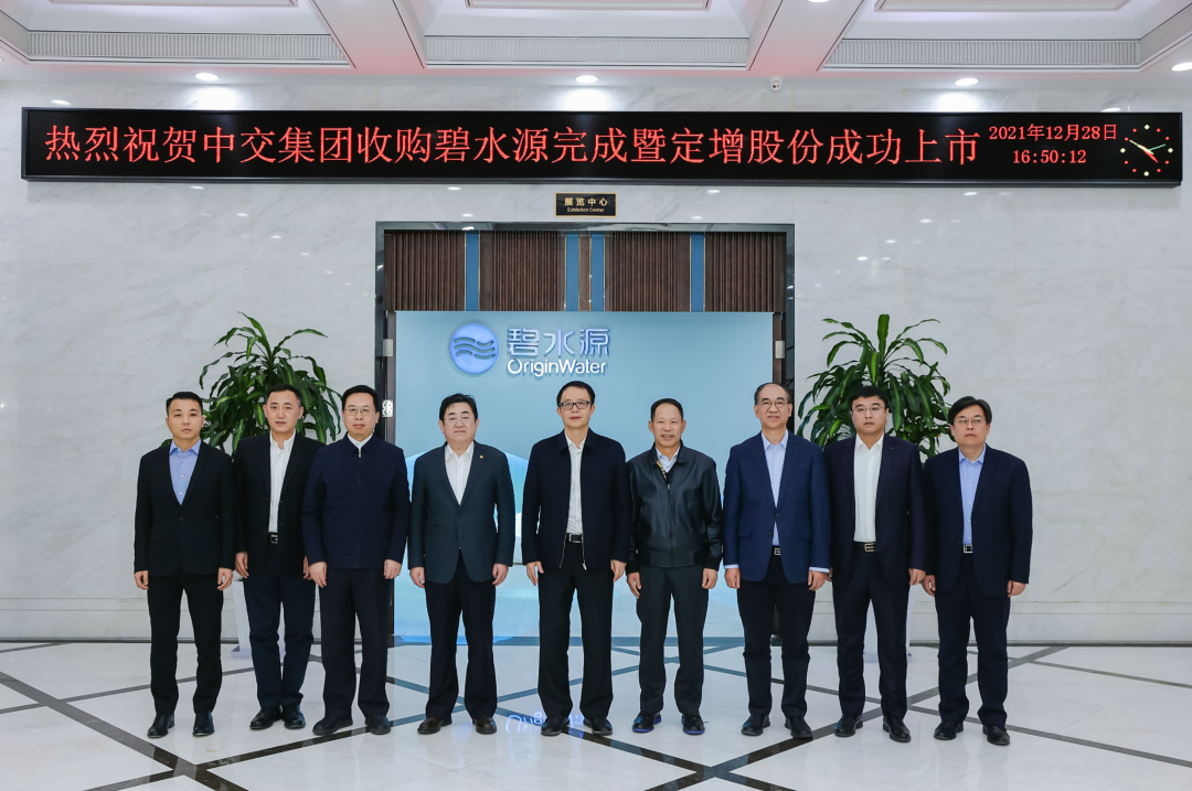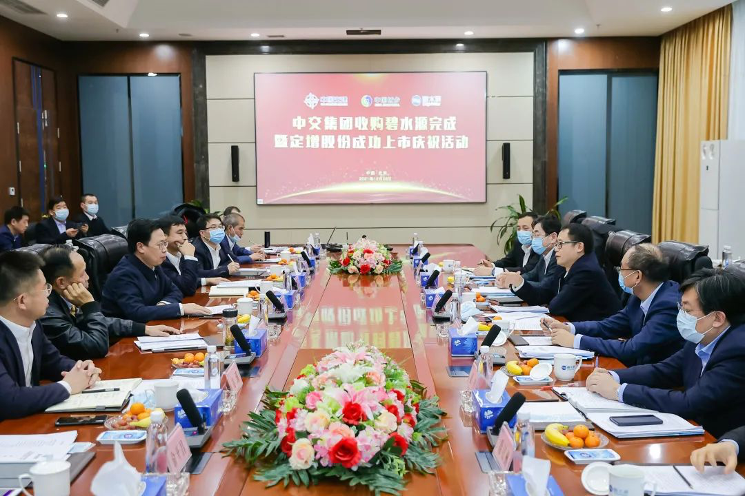 12月28日,中交集团党委副书记、总经理王海怀一行赴中国城乡碧水源出席中交集团完成收购碧水源暨定增股份成功上市庆祝活动。