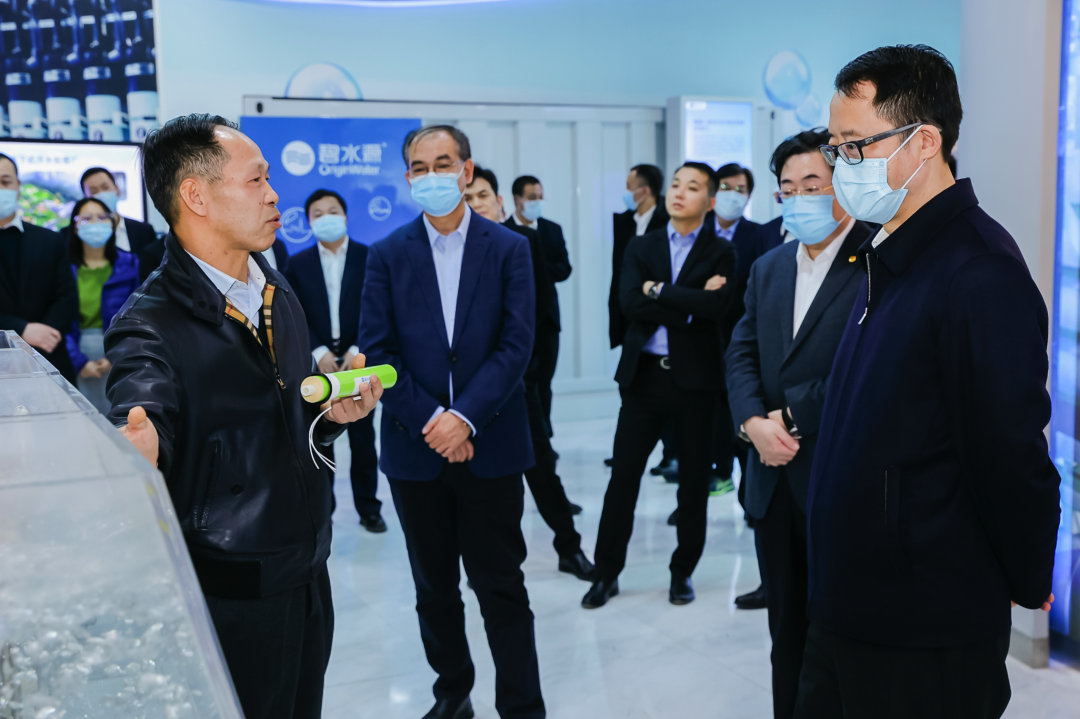 会前,王海怀一行在碧水源创新膜技术展示中心听取了碧水源董事长文剑平的业务介绍。碧水源坚持以自主研发的膜技术解决中国“水脏、水少、饮水不安全”三大问题,为城市生态环境建设提供整体解决方案,目前已发展为世界一流的膜技术企业之一,中国环保行业、水务行业标杆企业。