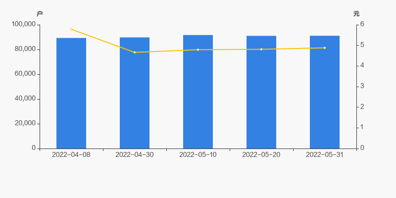 2022年4月8日至今,公司股东户数有所增长,区间涨幅为2.00%。2022年4月8日至2022年5月31日区间股价下降15.63%。