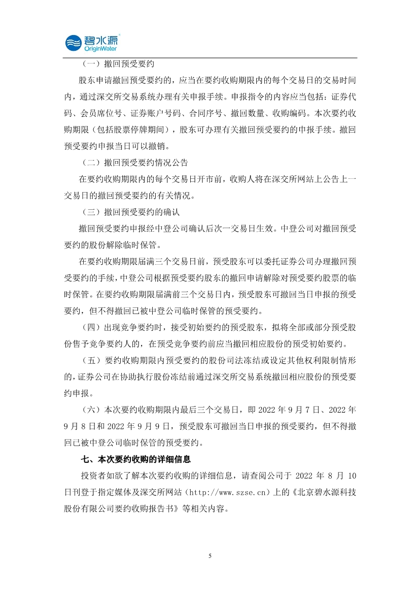 本次要约收购期限为2022年8月11日至2022年9月9日。按照本次要约收购申报程序,在本次要约收购期限内最后三个交易日(即2022年9月7日、2022年9月8日、2022年9月9日),预受的要约不可撤回。