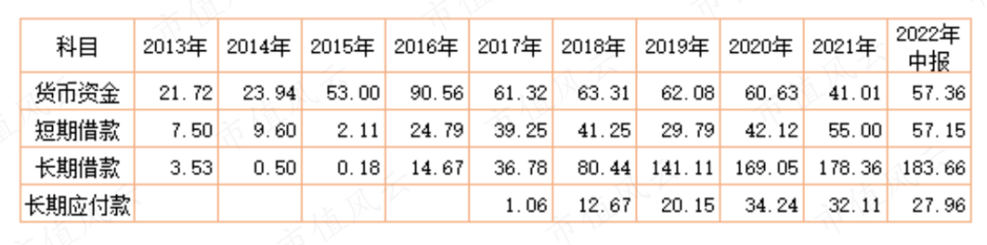 2017年货币资金61.3亿元,其中,可随时用于支付的银行存款60.9亿元,然而,当期的短期借款新增超22亿元,长期借款新增14.5亿元。