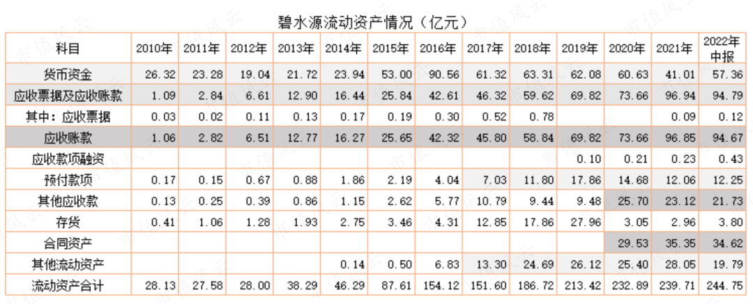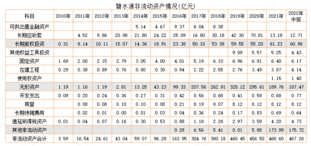 从增长倍数和绝对值规模看,碧水源这些年赚的钱基本都“藏在”非流动资产上。