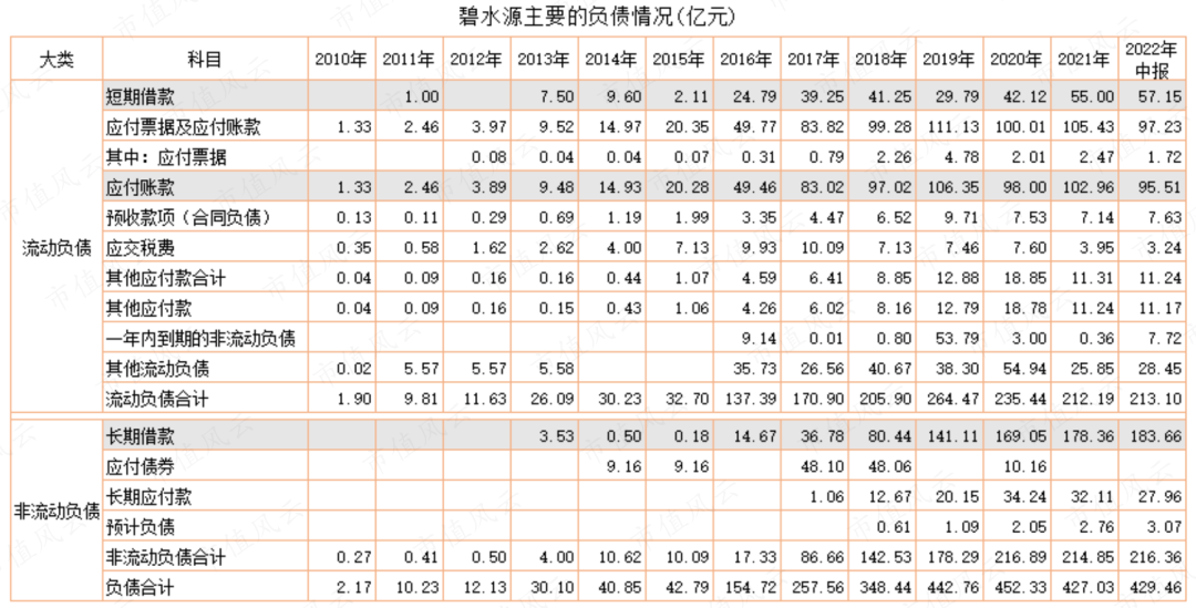 与碧水源资产同步增长的是负债:2022年6月底,总负债超429亿元,资产负债率达60.3%,而其资产负债率最高时达65.7%。