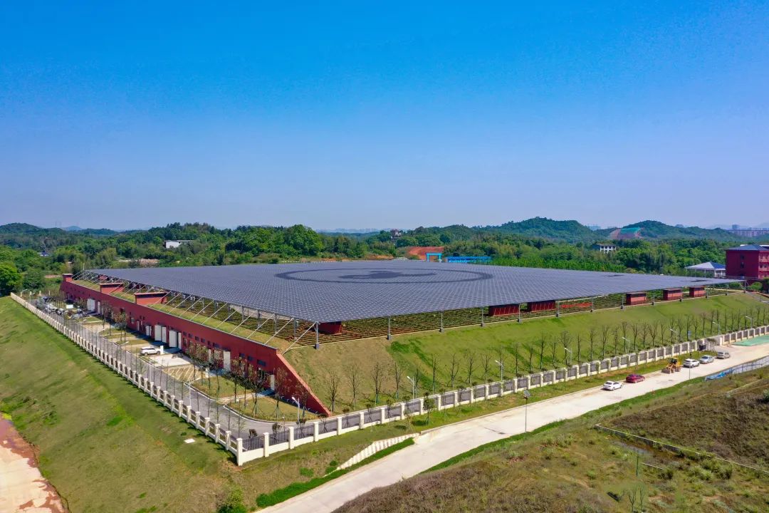 光伏发电采用专利技术“钢结构+预应力钢索”的新型支架形式,解决了大跨度支架与成本兼容的难题,确保了光电转换效率最大化和挥发性腐蚀气体对项目设施的腐蚀,有效实现资源与空间的二次利用。