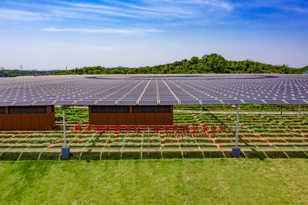 长沙市梅溪湖(雷锋)水质净化厂一期设计规模25万吨/天,占地115亩,项目按照土地高效集约、低碳节能的资源型现代化污水处理厂理念设计,采用半地下建设型式,打造地上太阳能光伏发电+地下污水处理的环保典型。