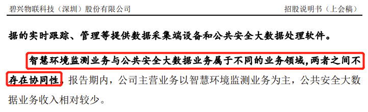 招股书披露:上述两块业务属于不同的业务领域,两者之间不存在协同性。报告期内占公司主营业务收入的95.31%、92.04%、96.17%和 97.73%。