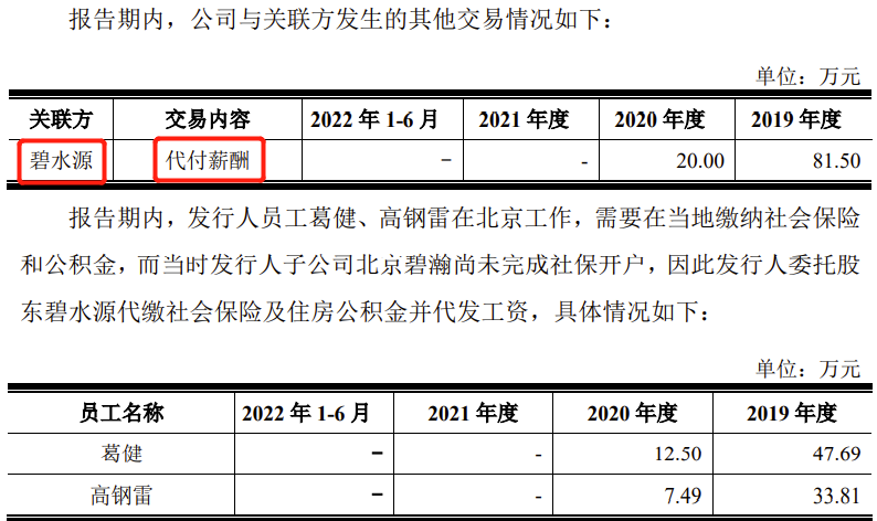 碧水源在2019年、2020年还为发行人代付薪酬金额分别为81.50万元、20万元。