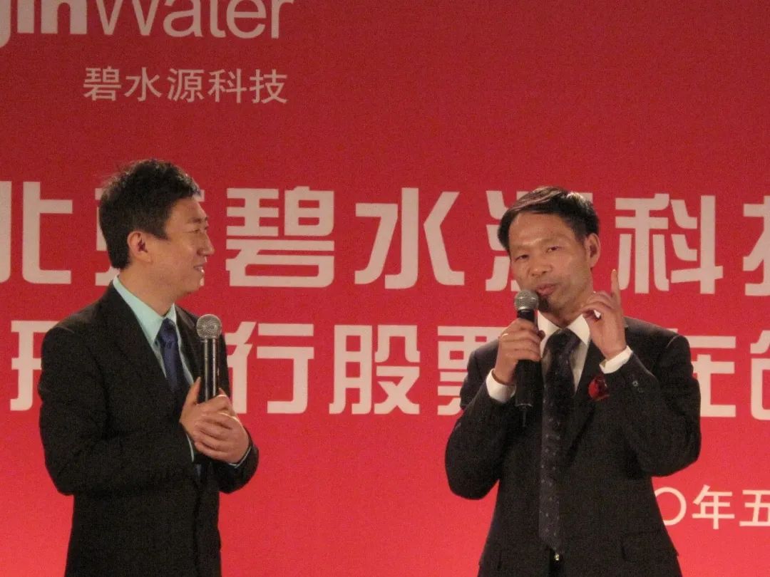 2010年5月,文剑平(右)在碧水源上市答谢会上