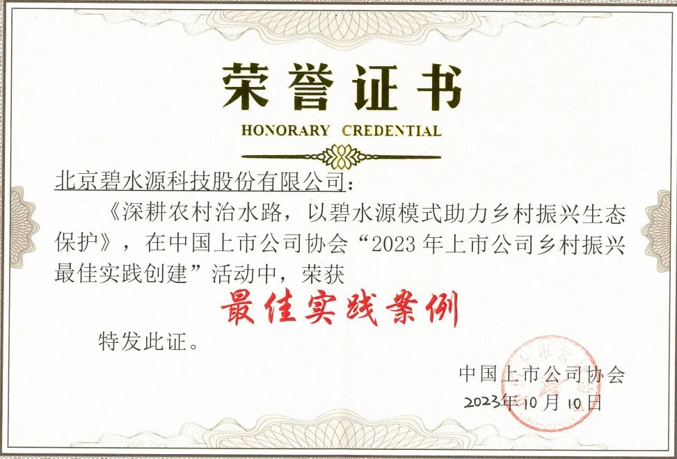 近日,中国上市公司协会联合中国乡村发展基金会、赣州市人民政府在江西省赣州市举办2023上市公司乡村振兴经验交流会暨最佳实践案例发布会,碧水源乡村振兴案例“深耕农村治水路,以碧水源模式助力乡村振兴生态保护”成功入选中国上市公司协会“2023上市公司乡村振兴最佳实践案例”并将入编中国上市公司协会出版的《上市公司乡村振兴典型案例》丛书。