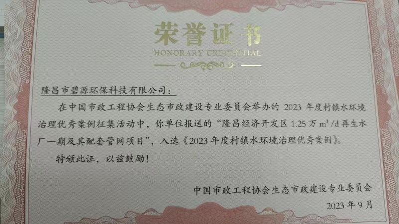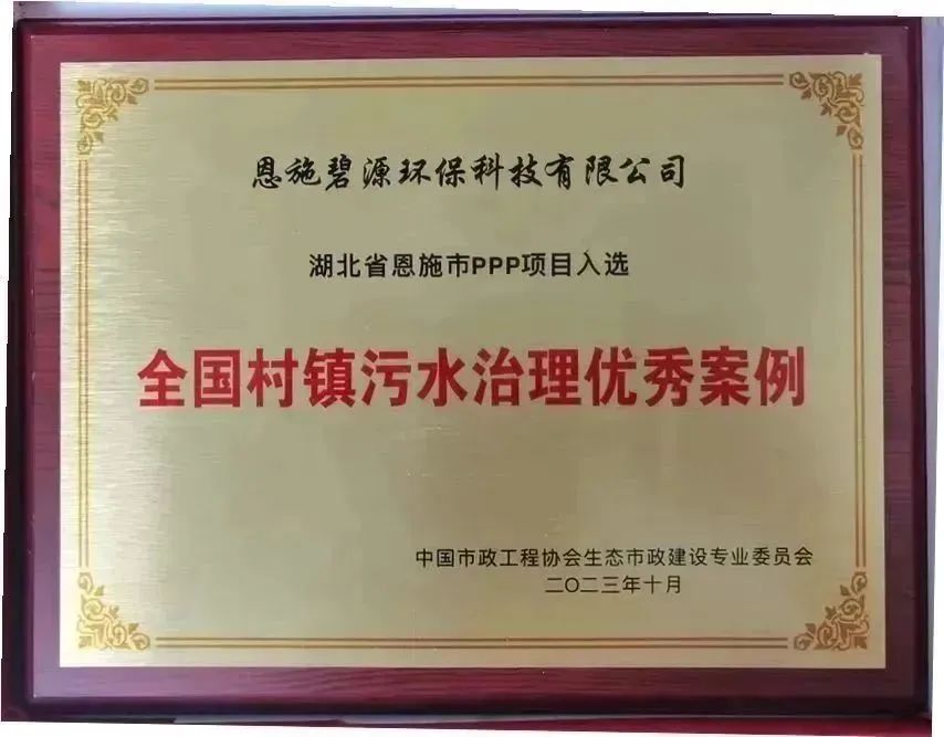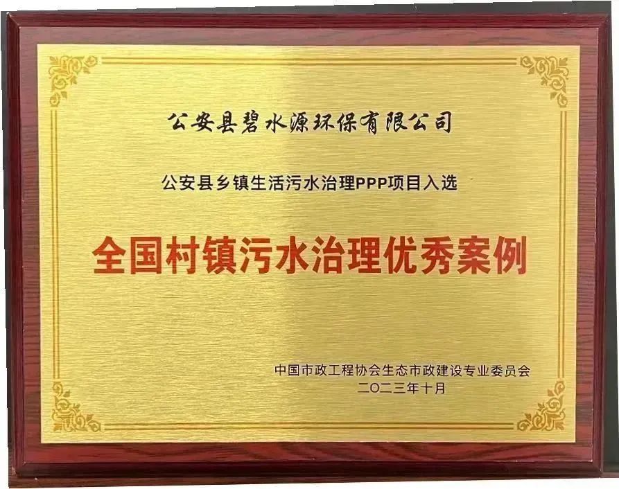 通过评审单位ANSO环境科技产业联盟(村镇联盟)的层层筛选、严格评审,碧水源旗下的五家公司阳春市碧源春环保科技有限公司、公安县碧水源环保有限公司、隆昌市碧源环保科技有限公司、恩施碧源环保科技有限公司、眉山市彭山久安水务有限公司运营的项目,成功突出重围、脱颖而出,入选《2023年度村镇水环境治理优秀案例集》,并获得由中国市政工程协会生态市政建设专业委员会颁发的荣誉证书。