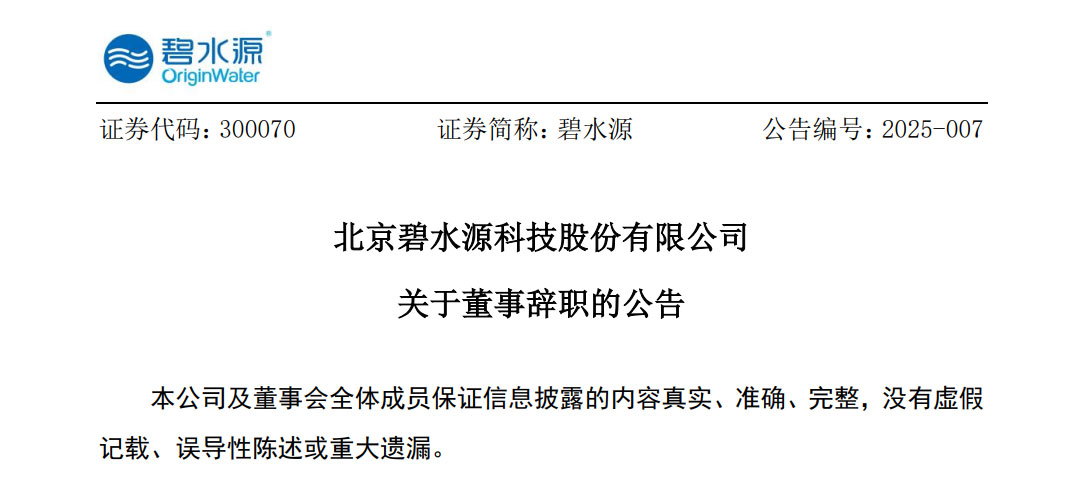 1、关于董事辞职的公告,碧水源,2025-02-12