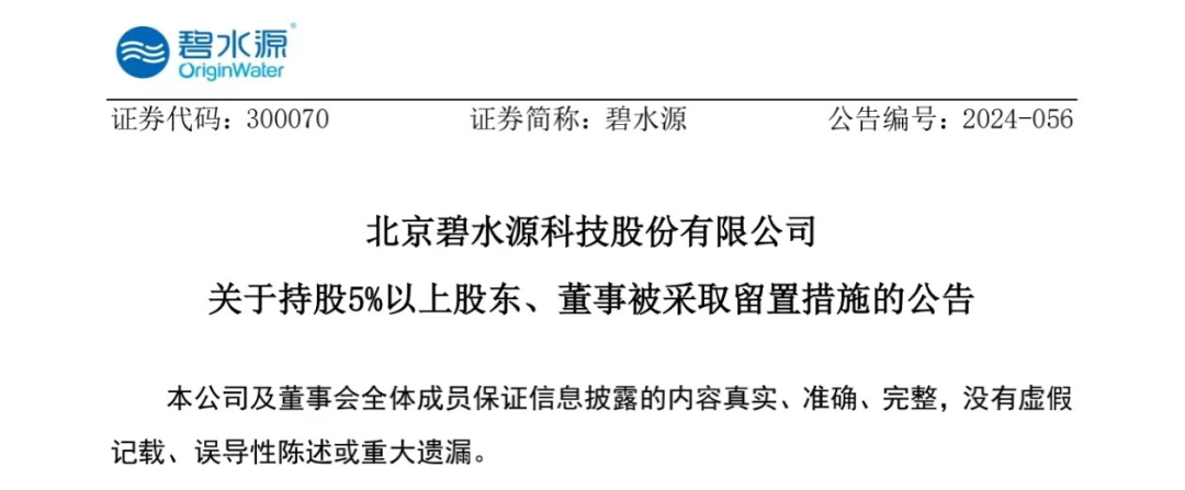 上一次听到有关文剑平的新闻,还是去年7月。2024年7月26日,碧水源曾经发布公告称,公司于2024年7月26日收到弥勒市监察委员会签发的《立案通知书》和《留置通知书》,公司持股5%以上股东、董事文剑平先生被立案调查、实施留置。