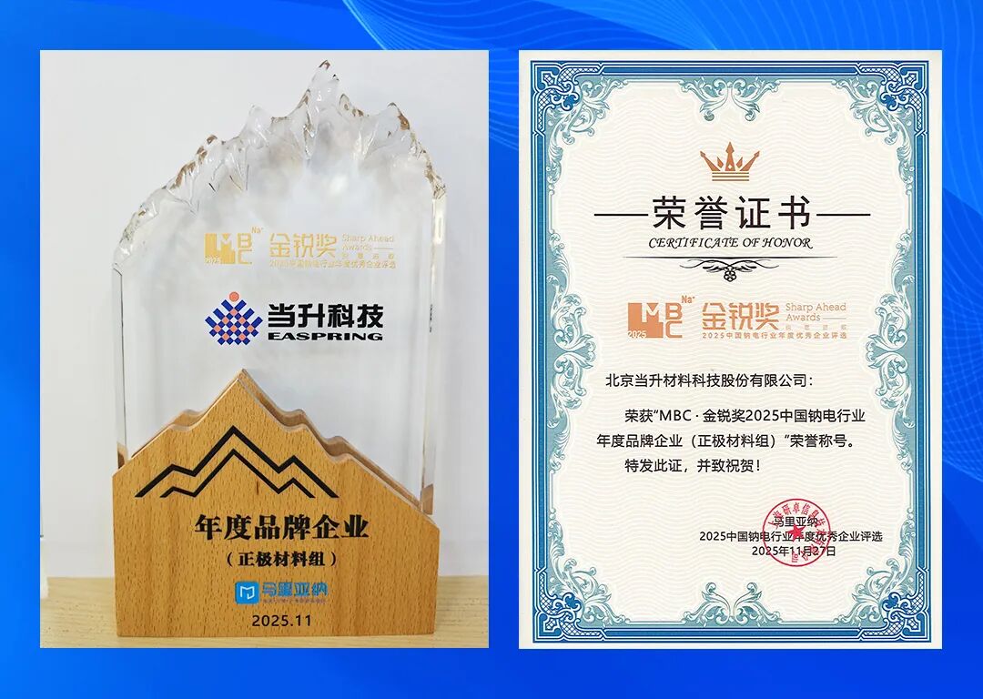 近日,MBC2025(第三届)中国钠电产业年会暨第五届中国钠离子电池技术与产业发展高峰论坛圆满落幕,备受行业瞩目的“金锐奖”评选结果同步揭晓。当升科技凭借在钠电正极材料领域的技术创新、产品竞争力及产业化落地成果,荣膺“MBC·金锐奖2025中国钠电行业年度品牌企业(正极材料组)”称号,行业地位再获权威认证。