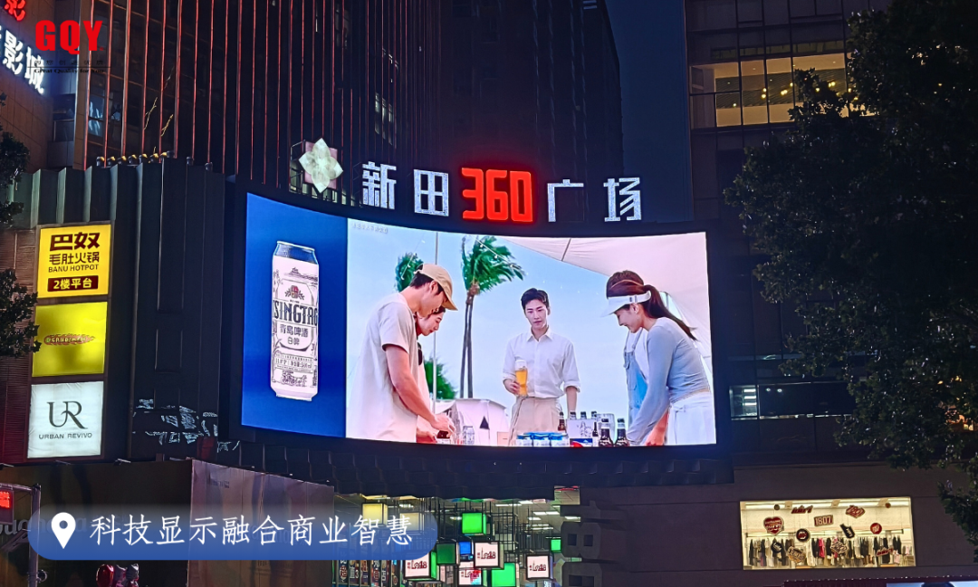 LED超清大屏作为商业引流的新窗口,以“显示科技+商业智慧”重新定义户外媒体价值。GQY视讯LED大屏不仅具备前沿显示技术,画面细腻通透,大屏支持拼接组合及分屏展示,为新品推广、多品牌联动等商业活动提供灵活多样的广告解决方案,吸引更多首发品牌入驻并持续带来流量,助力新田360广场推行“潮流餐饮+时尚娱乐+潮牌文化”复合多元商业模式,显著提升花园路商圈整体的商业价值与品牌影响力,也为这座流量地标的商业生态注入强大活力。
