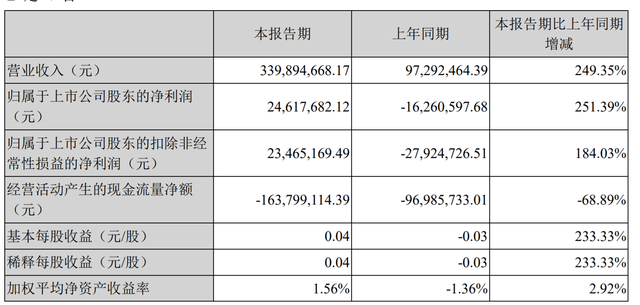 公告显示,国民技术2022年第一季度营收约3.4亿元,同比增加249.35%;归属于上市公司股东的净利润约2461.77万元,同比增加251.39%;基本每股收益0.04元;上年同期营收约9729万元;净利润亏损约1626万元;基本每股收益亏损0.03元。