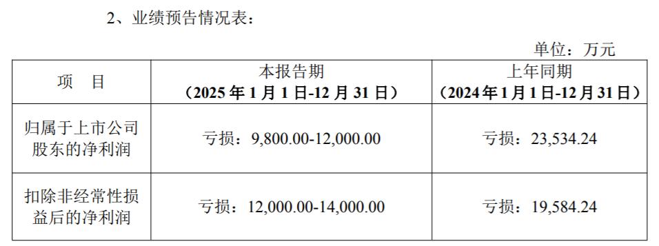 国民技术此前披露2025年年度业绩预告,预计2025年归母净利润约亏损9800万元至1.2亿元,上年同期亏损2.35亿元;扣除非经常性损益后的净利润预计约亏损1.2亿元至1.4亿元,上年同期亏损1.96亿元。