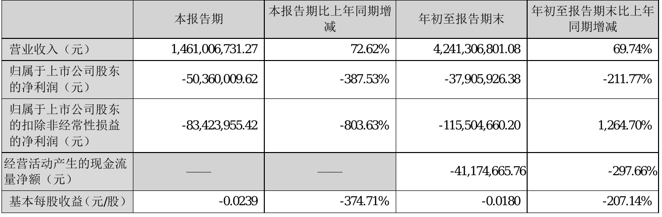 挖贝网10月26日,易成新能(300080)近日发布2021年前三季度报告,报告期内营业收入4,241,306,801.08元,同比增加69.74%;亏损37,905,926.38元。