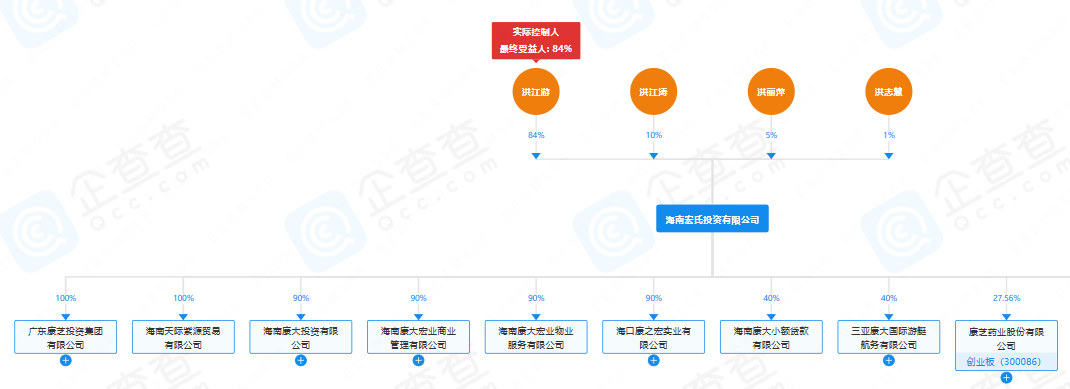 标点财经、投资时间网研究员注意到,目前,宏氏投资的股东均为自然人股东,其中,洪江游、洪江涛、洪丽萍分别持股84%、10%和5%,三人为同一家族成员拥有亲属关系;且洪江游、洪江涛、洪丽萍分别担任康芝药业董事长、总裁、副董事长及副总裁职务。