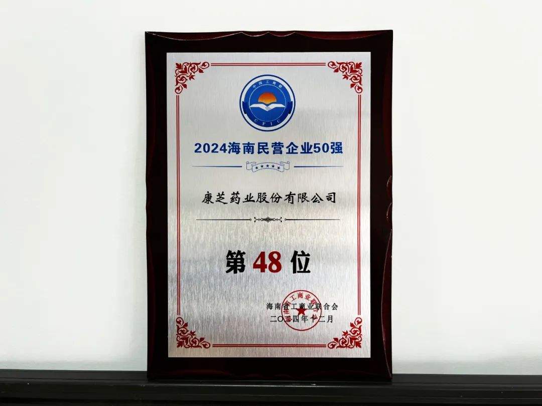 本次康芝药业荣登“2024海南民营企业50强”榜单,是社会各界对公司综合实力的认可,更是对公司未来发展的激励和鞭策。