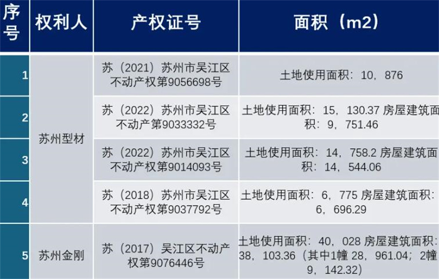 三笔借款中,最大一笔2.75亿借款的担保物是不动产——子公司苏州型材及苏州金刚以其部分土地、房产。