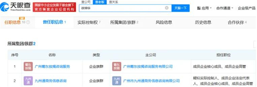 但以此就断定此徐坤华就是欧昊集团的员工或合作伙伴,还有些武断。另外一些公开信息,则暴露了徐坤华与欧昊集团之间的关系。天眼查显示,徐坤华曾任职高管的相关信息中就包括广州葡东按揭咨询有限公司。