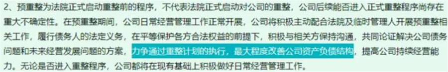 虽然公告中没有提“破产”两个刺眼的字眼,但是“重整”、“明显缺乏清偿能力”是非常严重的事情。