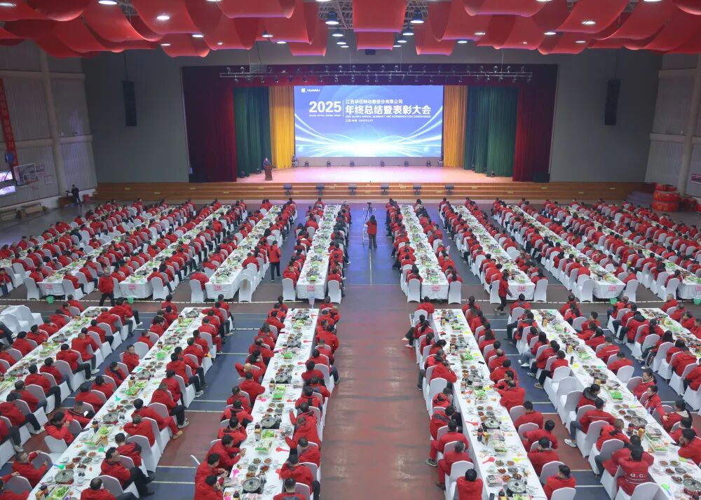当日下午,全体员工身着统一红色厂服有序入场,会场氛围喜庆而庄重。会议由副总经理胡仁绸主持,在全体与会人员齐唱《华伍之歌》的嘹亮歌声中正式启幕,歌声彰显了华伍人团结奋进、昂扬向上的精神风貌。
