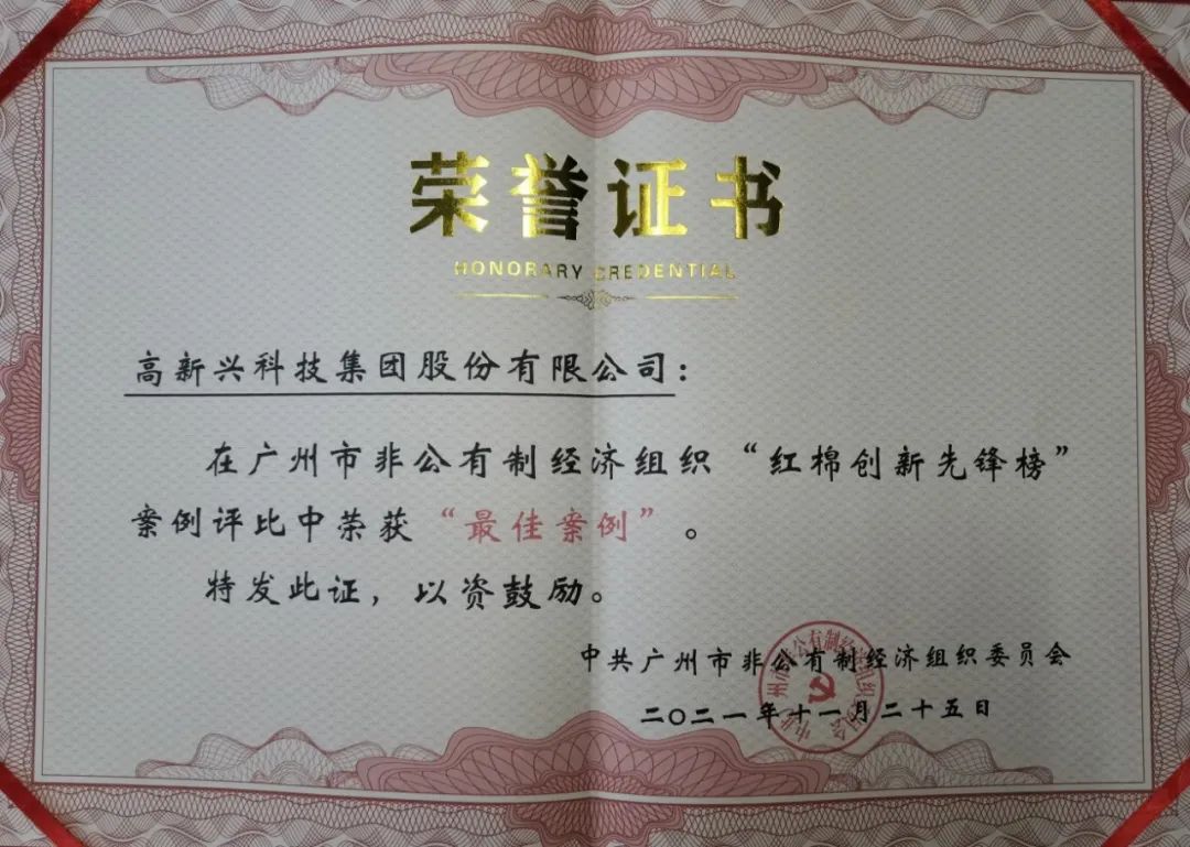为进一步发挥全市非公经济组织党组织的政治功能和党员的先锋模范作用,广州市非公党委在全市非公经济组织中开展“红棉创新先锋榜”活动。其中,高新兴科技集团从全市众多案例中脱颖而出,荣获“红棉创新先锋榜”最佳案例,突出展示了广州民企“以党建引领创新、以科技赋能生活”的创新理念。