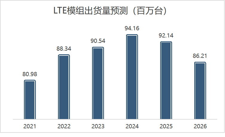 全球市场LTE模组出货量预测(数据来源:TSR)
