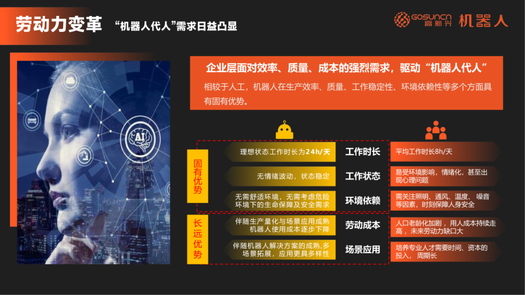降本增效、提质增效、提档升级始终是社会和企业进步的追求目标,安防巡检行业“机器人代人”的需求日益凸显:机器人在工作效率、质量、稳定性和环境依赖性等多方面具备明显优势。随着社会发展和机器人使用成本的进一步降低,“机器人代人”所创造的经济和社会价值日益突出。