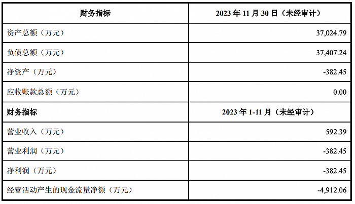 2023年1-11月,广州图灵的营业收入为592.39万元、净利润为-382.45万元、经营活动产生的现金流量净额为-4912.06万元。