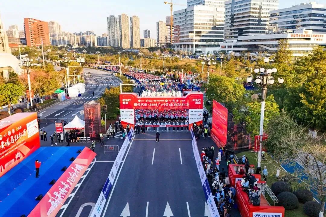 12月24日上午8点,随着一声哨响,2023广州黄埔马拉松赛(以下简称“黄马”)在中新广州知识城凤凰湖正式发令起跑,来自多个国家和地区约2万名跑友欢呼冲出起跑线,浩浩荡荡犹如万马奔腾,尽情燃放冬日运动热情。