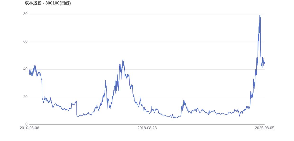 从上市首日至今,双林股份的市值实现了6.42倍的增长,显示出较强的成长性。2025年5月7日,双林股份的市值巅峰达到329.41亿元,股价也顺应升至82.0元。而至8月5日收盘,双林股份的股价为45.07元,市值为257.79亿元,相比峰值时期市值减少71.62亿元,市值蒸发了21.74%。