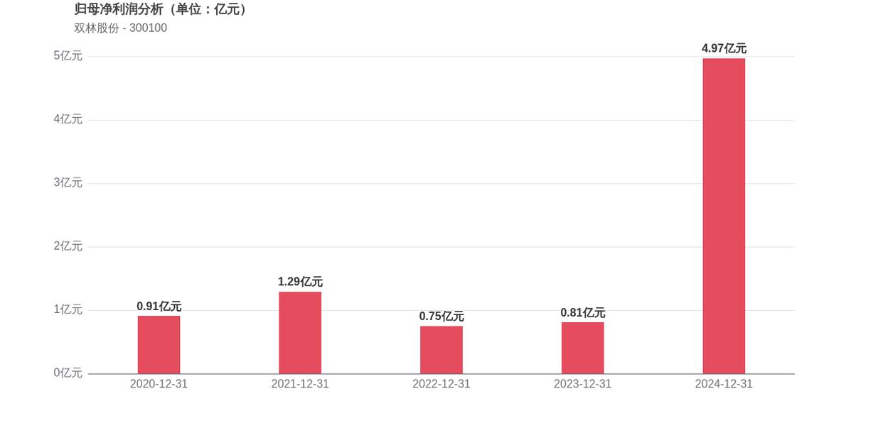 利润角度分析,2020年双林股份实现归母净利润0.91亿元,2024年4.97亿元。2024年归母净利润同比增速高达514.49%,盈利能力显著提升。