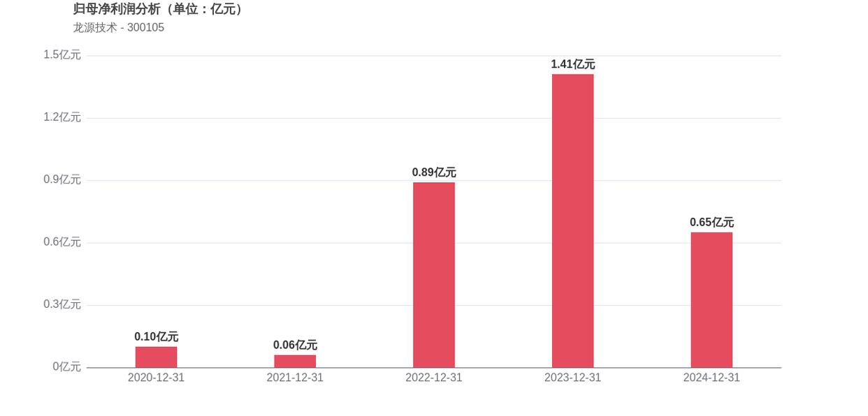 利润角度分析,2020年龙源技术实现归母净利润0.10亿元,2024年0.65亿元。公司盈利能力在波动中有所改善。