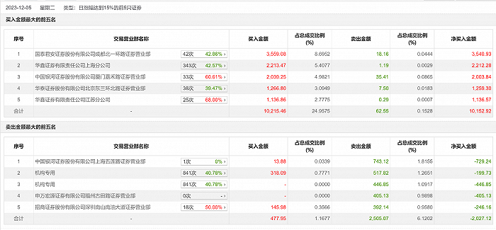12月5日,西部牧业今日涨停,全天换手率达17.72%,振幅达19.51%。龙虎榜数据显示,营业部席位合计净买入8125.8万元。其中,机构买入318.09万元,卖出964.67万元,合计净卖出646.58万元。此外,国泰君安证券成都北一环路证券营业部、华鑫证券上海分公司分别买入3559.08万元、2213.47万元;中国银河证券上海五莲路证券营业部、申万宏源证券有限公司福州古田路证券营业部分别卖出743.12万元、405.13万元。