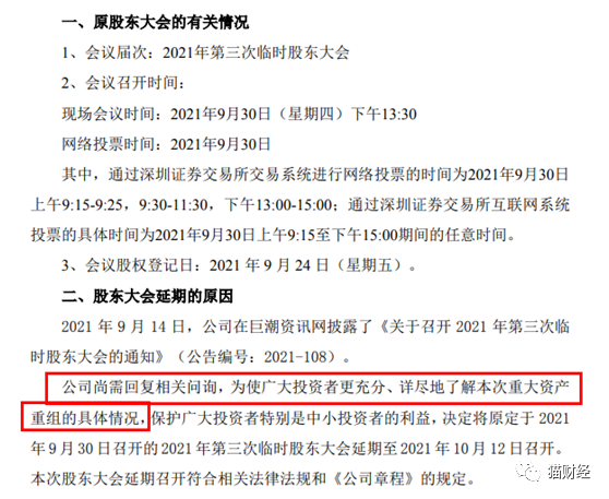 由于重大资产重组受到监管的问询,新开源(300109.SZ)原定于9月30日召开的股东大会将延期至10月12日召开,该次股东大会将审议重组的多条议案。